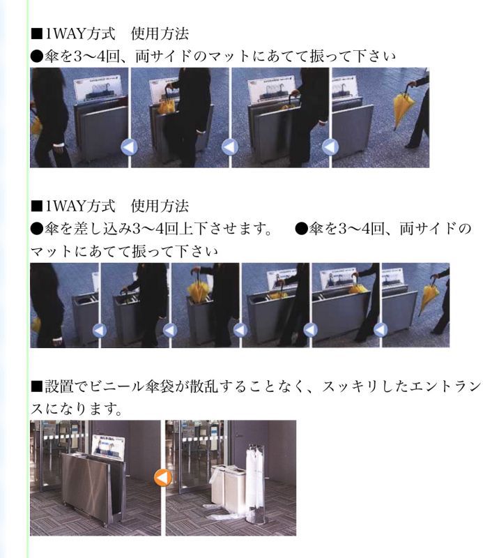 雨傘除水器 - 去除雨傘水滴 03 使用方法 : 只要多次搖動傘,超級吸水纖維迅速去除雨傘雨滴。 M1626SM1W-HL-M 尺寸 : 445mm x 350mm x 800mm 重量 : 約12kg 儲水 : 4L M1626DM1W-HL-M 尺寸 : 445mm x 300mm x 800mm 重量 : 約17kg 儲水 : 4L M1626S1W-HL-M 尺寸 : 820mm x 350mm x 800mm 重量 : 約22kg 儲水 : 4L M1626D1W-HL-M 尺寸 : 780mm x 300mm x 800mm 重量 : 約30kg 儲水 : 4L M1626S2W-HL-M 尺寸 : 745mm x 350mm x 800mm 重量 : 約26kg 儲水 : 4L M1626D2W-HL-M 尺寸 : 1,104mm x 304mm x 800mm 重量 : 約42kg 儲水 : 4L 物料 機身 : 不銹鋼 吸水墊:超細纖維成型紗